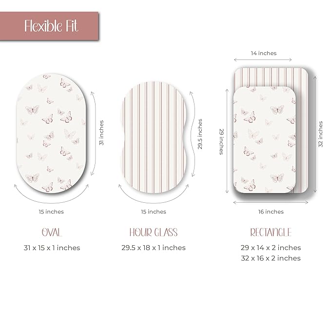- This convenient two-pack features a playful butterfly design and modern stripe print on white combed jersey knit cotton. You can be rest assured that your baby’s sleep surface will always be covered with a clean trendy and soft cotton sheet with this bassinet sheet set!