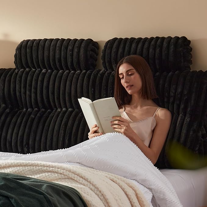 - [New Faux Fur Headboard Pillow] The new fabric is different from traditional flannel or cotton and linen fabrics. This new product uses high-density and high-weight faux fur fabric, which not only brings you a touch close to real fur and a glossy luster, but also creates a warm home atmosphere.