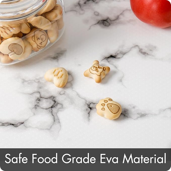 - 【Premium Quality】: Drawer Liner made of Food-Grade EVA Material;This kitchen, drawer, cabinet, shelf, fridge, and general storage liner is made from BPA-free, odor-free material;The anti-slip design ensures they stay in place without curling up