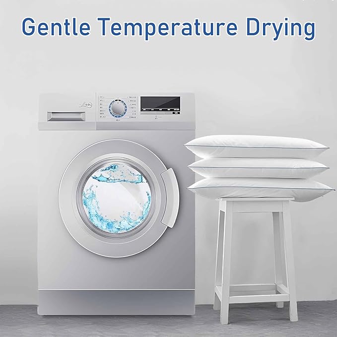 - WHAT YOU GET - 2 pack of full size comfy bed pillows. Gentle washing with cold water. Gentle temperature drying.