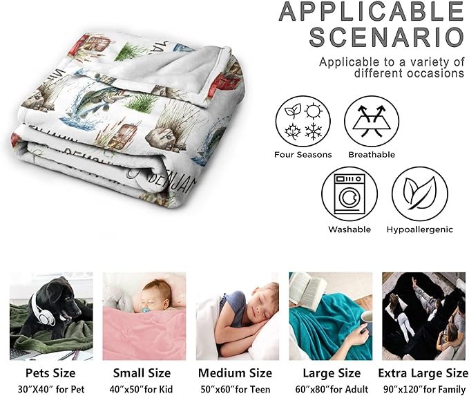 Custom Fishing Blankets and Throws,Fishing Gifts, Gifts for Fisherman,Custom Fish Blankets Fishing Gift for Man, Fish Hunter Gifts Throw Blanket, Fathers Day Fishing Gifts for Men,Teens Size-50"x60"