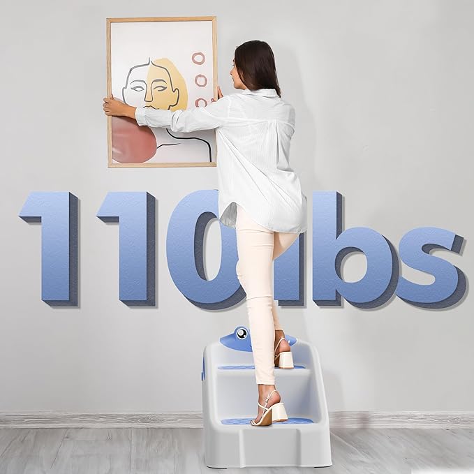 - [Double the Steps, Easy Access]: Elevate your child's reach with our frog-themed kids step stool, designed to help them access higher places effortlessly. Watch with pride as your little one confidently climbs and achieves their goals.