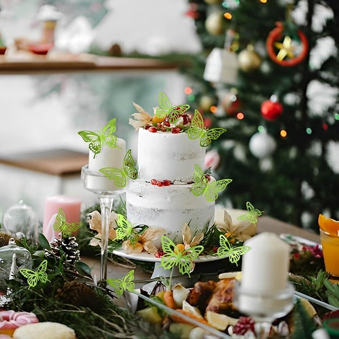 48Pcs 3D Butterfly Wall Decor 3 Sizes 3 Styles, Butterfly Decorations Party Birthday Cake Decoration, Removable Butterfly Wall Stickers for Kids Nursery Wedding Bedroom Room Decor (Green)