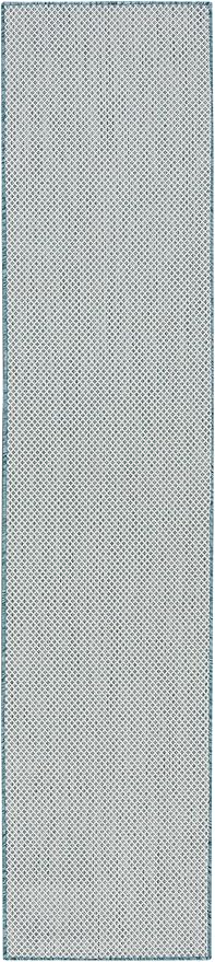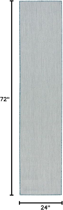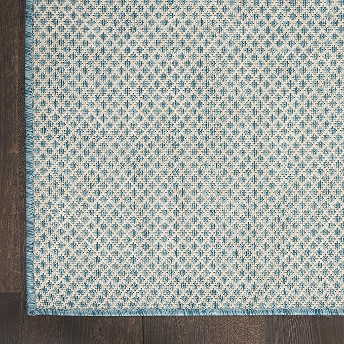 Nourison Courtyard 6' Runner Ivory Aqua Fabric Area Rug