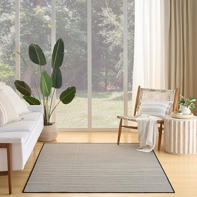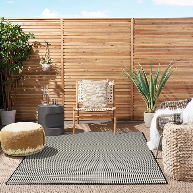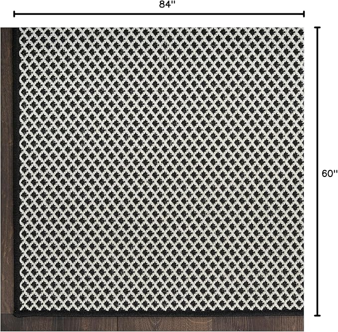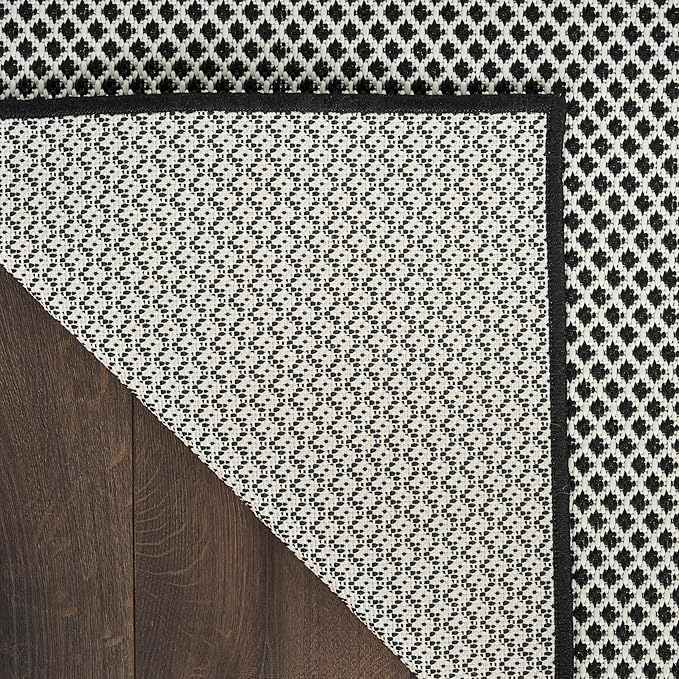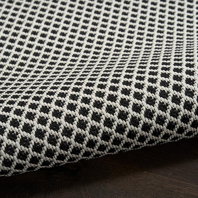 Nourison Courtyard Black White 5' x 7' Area Rug - Easy Clean, Non Shedding, Bed Room, Living Room, Dining Room, Kitchen (5' x 7')