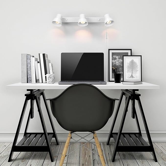 Globe Electric 64000116 22" 3-Light Plug-in Track Lighting, Matte White, Pivoting Track Heads, 15-Foot Cord, in-Line on/Off Rocker Switch