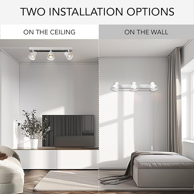 - VERSATILE PLUG-IN DESIGN: the unique plug-in design provides complete installation versatility for your track lighting – place it on your wall or ceiling for ideal lighting in any space