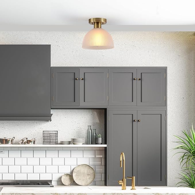 Globe Electric 1-Light Semi-Flush Mount Ceiling Light, Matte Brass, Frosted Ribbed Glass Shade, Home Improvement, Dining Room, Kitchen