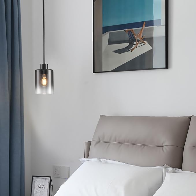 - Bulbs and Warranty - Black pendant light fixture comes with glass shade that has a diameter of 5" and a height of 6" compatible with most standard medium base E26 bulbs.Dimmable when used with compatible dimmer switch.Smart bulbs works well.Any questions,our customer support team is here to help in 24 hours
