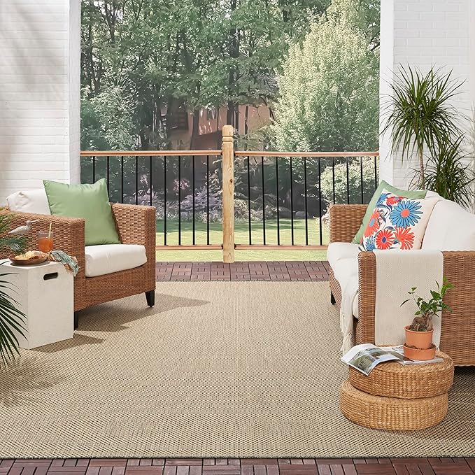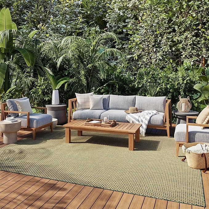 Nourison Courtyard Green 8' x 10' Area Rug - Easy Clean, Non Shedding, Bed Room, Living Room, Dining Room, Kitchen (8' x 10')