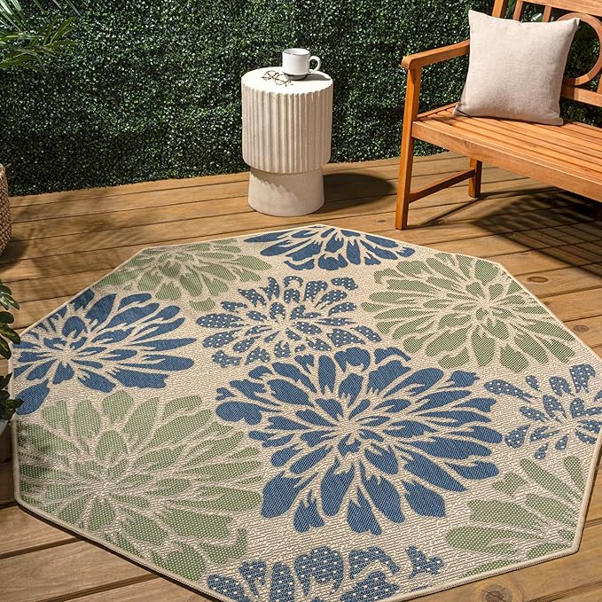 JONATHAN Y SMB110B-8TGN Zinnia Modern Floral Textured Weave Navy/Green 8' Octagon Indoor/Outdoor Area Rug, Non-Shedding, Stain Resistant, Fade Resistant, Easy-Cleaning for Backyard Patio, Porch
