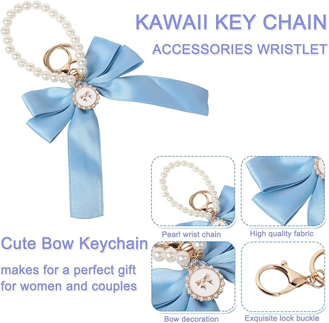 BELSITA Stanley Cup Accessories Set, Bow Pearl Chain Braided Design Water Bottle Handle Strap, Silicone Stanley Cup Boot, Stanley Charms for Stanley Cup 30/40oz Tumble (Blue)