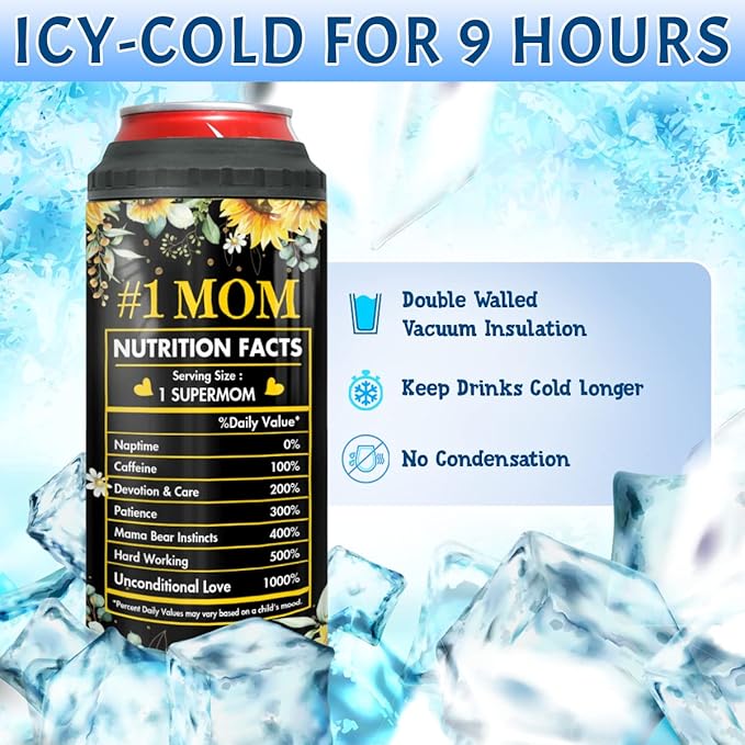 winorax Mom Gifts Mama Bear Tumbler 4-in-1 Can Cooler Mom Nutrition Facts Tumblers Sunflower Style Stainless Steel 16oz Travel Cup Mother's Day Christmas Birthday Gifts from Daughter Son