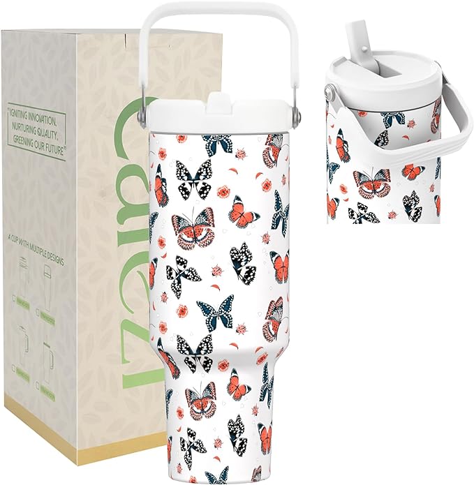 40oz Tumbler with Handle and Straw, Vacuum Insulated Tumblers with Flip Straw and Top Handle, Reusable Insulated Cup for Home, Outdoors, Leakproof, Fits in Cup Holder, Cold for 30 Hours
